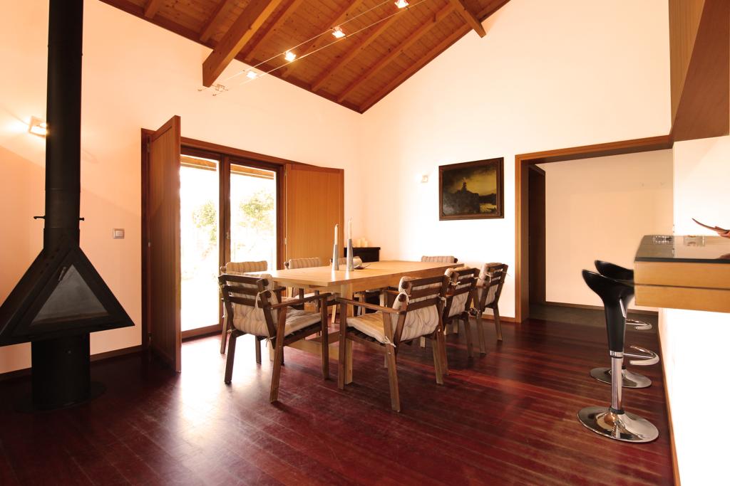 It has a total area of 1500m2. House with 200m2 is furnished and fully equipped. It has 3 bedrooms (1 suite), 2 wc`s (1 complete), kitchen with refrigerator, maq. dishwasher, oven, extractor hood, microwave, toaster, mixer, kitchen utensils, maq. coffee, maq. washing machine, iron and ironing board, tv, radio,Free Wi-Fi, central heating and a salamander.
