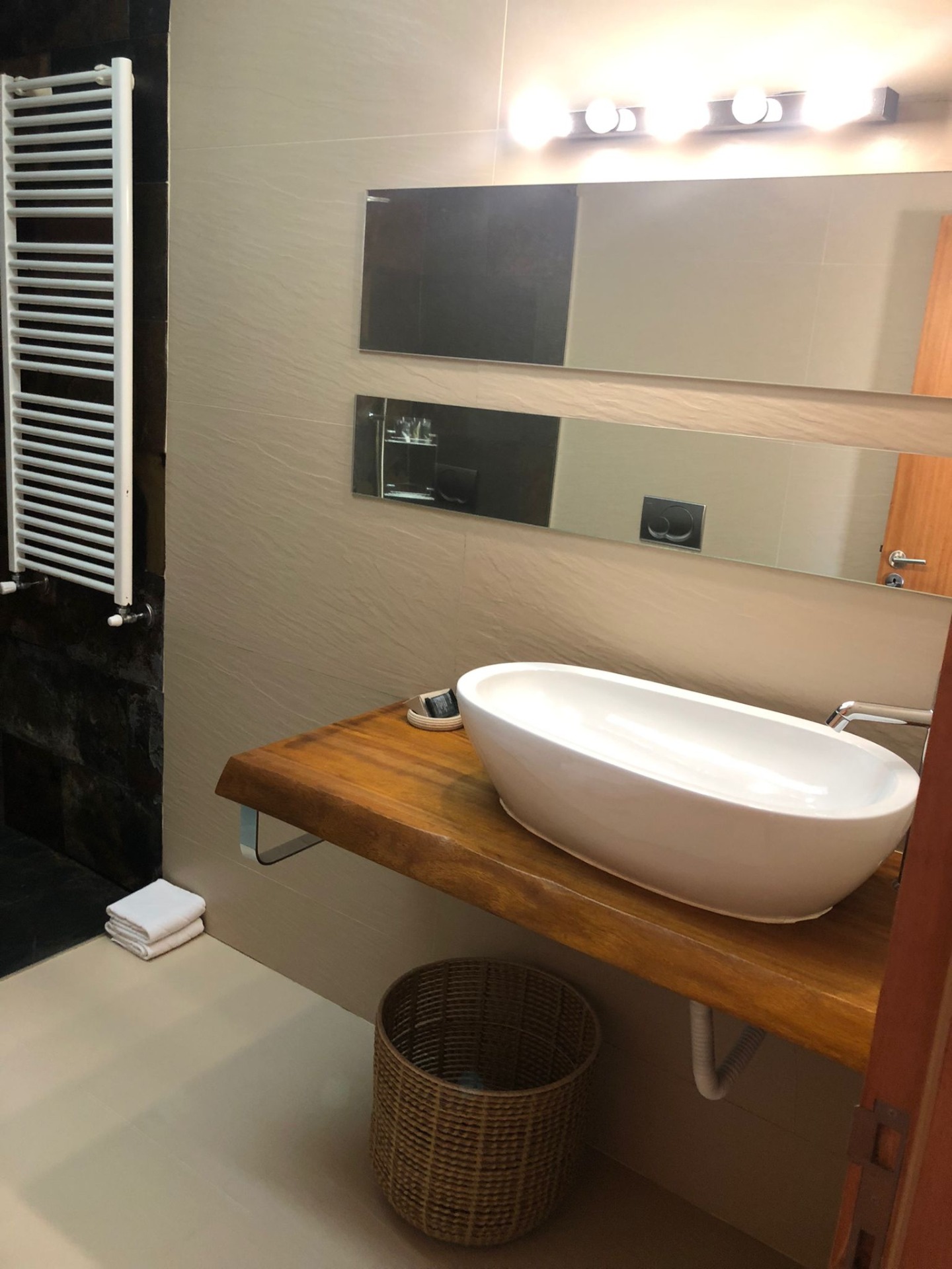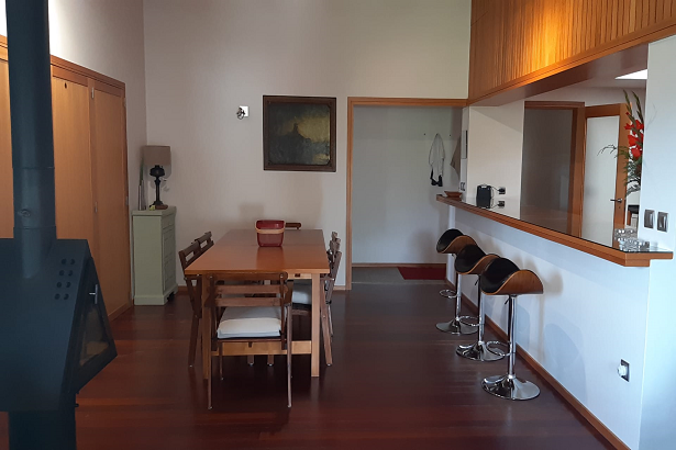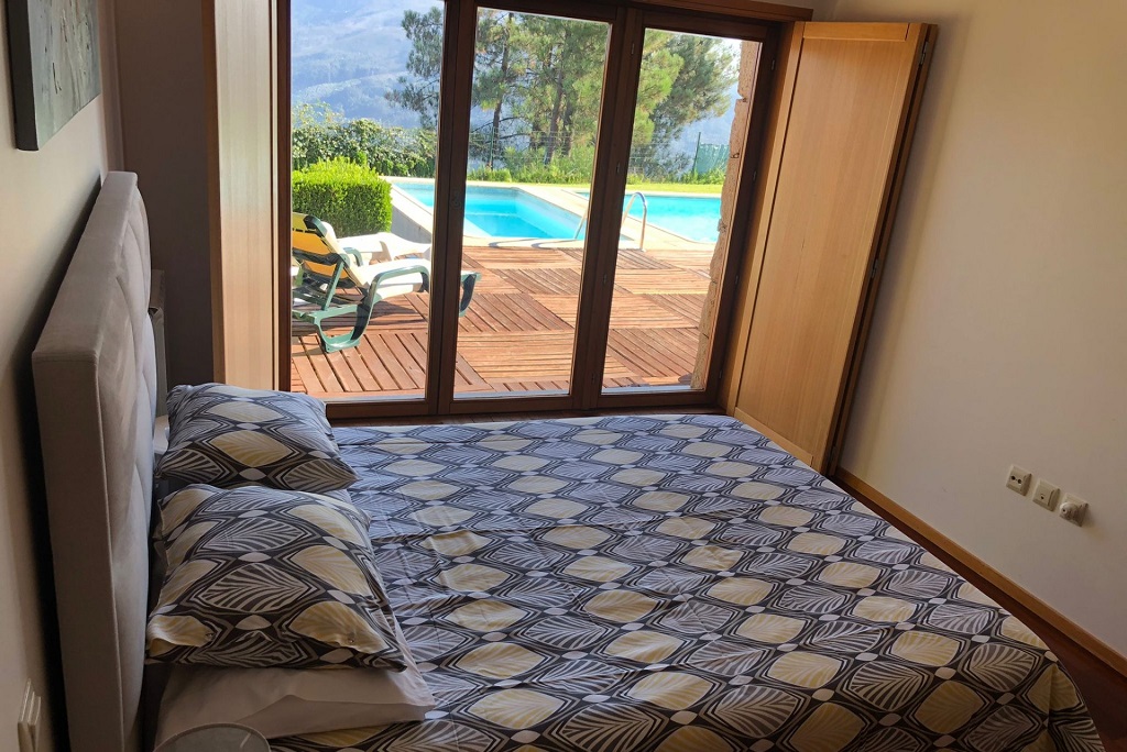 Possui uma área total de 1500m2. Casa com 200m2 está mobilada e toda equipada. Possui 3 quartos (1 suite), 2 wc`s (1 completo), cozinha com frigorifico, maq. lavar loiça, placa, forno, exaustor, microondas, torradeira, batedeira, utencilios de cozinha, maq. café, maq. lavar roupa, ferro e tabua de passar ferro, tv, radio, Wi-Fi grátis, aquecimento central e salamandra.